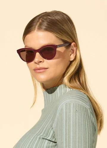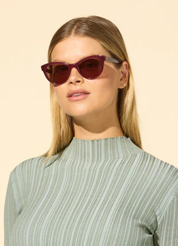Jess Sun is an oversized cat-eye frame with a bold, upswept silhouette and sculpted browline. Detailed with the Marquis Plaque at the temple and finished with lenses offering 100% UV protection.